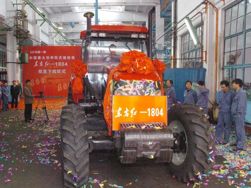 2005年中国最大的大功率轮式拖拉机在一拖批量下线日“东方红”动力换档重型拖拉机驶下总装线