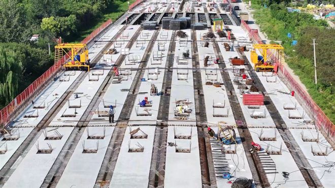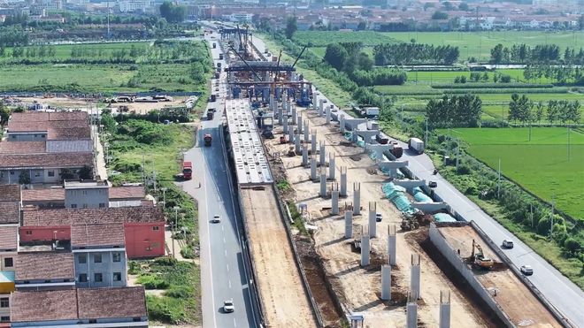 项目目前整体进展已达到42%,路基路面工程标头及标尾保通道路单幅完成导改10.2公里,城区段目前正在水稳摊铺和路基开挖填筑作业,保通道路路基工程完成99.2%,路面工程完成66.7%。桥梁工程下部结构桩基完成53.38%,承台及桥成53.2%,现浇墩柱和预制墩柱完成51.08%,现浇盖梁及预制盖梁完成33.51%,上部结构箱梁安装完成5.28%,桥面系与箱梁目前正在形成高效流水作业。