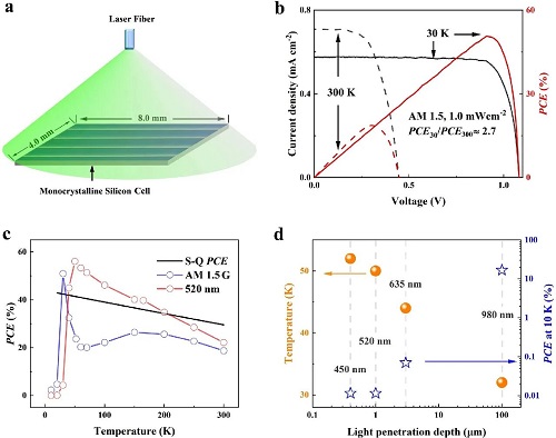 2.增强光穿透深度可有效缓解载流子冻结效应,将硅电池工作温度范围扩展至10 K。