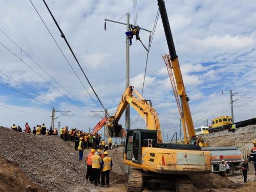 作业开始前,呼和段调用挖掘机、装载机对现场应急通道展开整修工作,为后续抢修作业的顺利推进清除了障碍。在一天一夜的鏖战中,抢险人员顺利完成对供电接触网设备的修复工作,具备送电条件,线路恢复通车。